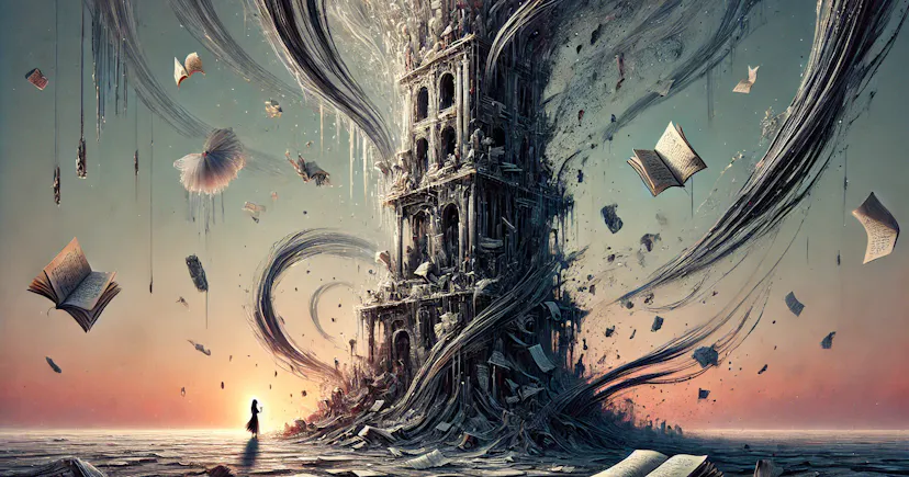 如今的新芽长在光纤土壤里。他们用约会软件测量心距,在游戏皮肤商城收集破碎的自我。旧塔仍在倾倒,每一块坠落的砖都显影出被压扁的梦:穿芭蕾舞裙的会计,写代码的诗人,所有在签证面试时突然流泪的年轻人。